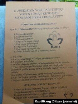 Резюме"PaxtaGram" лойиҳасида Сиздан келаётган хабарлар, фото ва видеолар ўрин олади. Telegram, WhatsApp тармоғидаги рақамларимиз: +420 724 971 539; +420 724 740 755. Электрон почтамиз: ozodlikmail@gmail.com 60 йилдан зиёд вақт мобайнида холис журналистика андазалари асосида фаолият юритаётган Озодлик радиоси, агар истасангиз, шахсингиз сир қолишини кафолатлайди. ****************************************************************************** Муҳим эслатма: "PaxtaGram" лойиҳасида бериладиган маълумотлар учун Озодлик таҳририяти масъул эмас! |