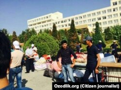 "Мен сизларга Наманган Муҳандислик ва Қурилиш институтидан ёзмоқдаман. Талабалар бугун Наманган вилоят, Поп туманига пахта териш учун юборилмоқда. Суратларда барчаси акс этган".