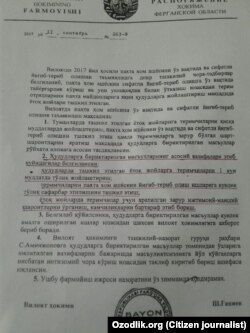 "Бир гуруҳ божхона ходимлари номидан Фарғона вилоят божхонасидаги пахтага олиб чиқиш кампанияси бўйича ёзмоқчимиз.