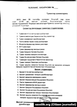 ХОРАЗМ. “Хоразмдан ёзмоқдамиз. 26 сентябрдан вилоят ҳокими Ф.Эрманов томонидан кеч соат 22 да пахта йиғим-теримига бағишланган селектор йиғилиши ўтказилмоқда. Ҳоким иш вақтидан ташқари пайтда йиғилиш ўтказиш қонунга зид эканини билмасмикан?!”