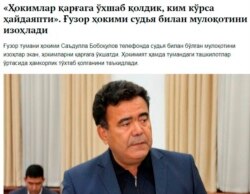 Ижтимоий тармоқда фуқаролик ишлари бўйича Ғузор туманлараро судининг раиси Саттор Ақанов ва Ғузор тумани ҳокими Саъдулла Бобоқулов ўртасидаги мулоқот аудиоёзуви тарқалди (www.daryo.uz, 14 март). Телефон орқали суҳбатда ҳоким судьядан унинг қабулига келиши лозимлигини талаб қилади. Бунга жавобан суд раиси “Сизнинг қабулингизга бормайман, кечириб қўясиз!” дейди.