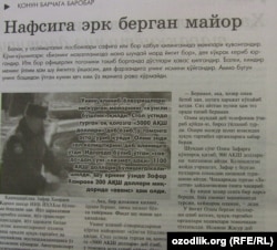 Қашқадарё вилояти Қарши шаҳри ИИБ йўл ҳаракати хавфсизлиги хизмати бўлинма бошлиғи, майор Зафар Хамраев офицерлик погонига номуносиб жиноятга қўл урди (“Постда”, 25 март). З.Хамраевга фуқаро И.Яхшибоев номига расмийлаштирилган ҳайдовчилик гувоҳномаси ва талон сохталаштирилгани ҳолатини ўрганиш топширилади. Ўрганиш жараёнида ҳужжатлар чиндан ҳам қалбакилаштирилгани ва фуқаро И.Яхшибоев уларни фуқаро Олим Абдуллаевдан олгани маълум бўлади. Шундан кейин майор З.Хамраев ҳужжатларни сохталаштиришда гумонланаётган О.Абдуллаевни суҳбатга чақириб, ундан 5000 доллар пора талаб қилади. Ички ишлар идорасида бўлиб ўтган “савдо”да “хизмат ҳақи” 1100 доллар бўлишига келишилади. Шу ернинг ўзида майор Хамраев 200 доллар “аванс” олади. Зафар Хамраев поранинг қолган қисмини беришини сўраб фуқаро О.Абдуллаевнинг ҳоли жонига қўймай муттасил қўнғироқ қилавергач, у майор устидан ҳуқуқ идораларига шикоят қилади. Йўл ҳаракати хавфсизлиги хизмати бўлинма бошлиғи поранинг қолган қисмини олаётганда қўлга туширилган. Ички ишлар зобитига қандай жазо тайинлангани очиқланмаган.