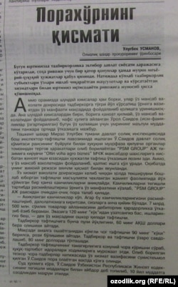 Тошкент шаҳридаги Мирзо Улуғбек туман давлат солиқ инспекцияси бош тафтишчиси порахўрлиги учун 10 йилга озодликдан маҳрум этилди (“Ҳуқуқ”, 30 март). Исми ошкор этилмаган солиқ мансабдори “PSM Group” ширкатига тегишли фирма фаолиятини текшириб, бир қатор камчиликларни аниқлайди. Солиқ амалдори камчиликлардан кўз юмиш эвазига компания раҳбаридан 120 минг доллар пора талаб қилади. Амалдор ва тадбиркор ўзаро савдолашиб пора миқдорини 80 минг долларга туширишади. Тадбиркор айни пайтда тамагир солиқ мансабдори устидан ҳуқуқ идораларига шикоят қилади ва у талаб этилган миқдордаги порани олаётганда қўлга туширилади.