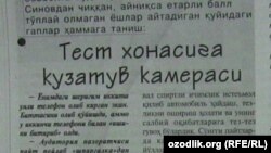 ​Олий ўқув юртларига кириш имтиҳонлари ўтказиладиган аудиторияларга кузатув камералари ўрнатиш ва аудиториядаги вазиятни ота-оналар монитор орқали кузатиб бориши лозим (“Ҳуррият”, 20 июль). Ана шунда “Аудитория назоратчиси пайт пойлаб “шпаргалка”дан кўчирувчиларга имкон берди” ёки “Бир бегона одам аудиториямизга кириб, иккита болага ёрдам бериб кетди” каби гап-сўзларга ўрин қолмайди, адолат ва холислик таъминланади деб ҳисоблайди газета. Қайд этилишича, катта чорраҳаларда камера ва фоторадар ўрнатилгач, қоидабузарликлар камаймоқда. Аудиторияларга ҳам камера ўрнатилса, ғирромликларнинг йўли ёпилади.