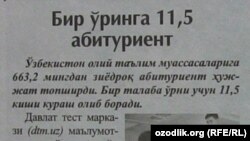 Бу йилги имтиҳонда бир ўрин учун 11,5 абитуриент курашади
