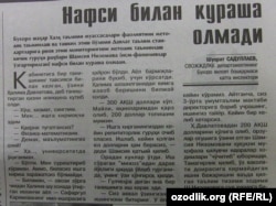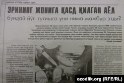 Жорий йил 20 август куни Фарғона вилояти Олтиариқ туманида яшовчи 60 ёшли аёл 67 яшар эрининг жонига қасд қилди (“Постда”, 1 сентябрь). Суриштирув жараёнида маълум бўлишича, марҳум эр спиртли ичимликларга муккасидан кетган бўлиб, қирқ йил бир ёстиққа бош қўйган рафиқасини маст ҳолда муттасил калтаклаб, хўрлаб келган. Қариб қуйилмаган қария хурмача қилиқлари билан маҳаллада ҳам отнинг қашқасидек ҳаммага маълум бўлган. Қотиллик рўй бергани куни ҳам муштумзўр эр бўкиб спиртли ичимлик ичгач, кампирини роса калтаклаган, кейин уни маънан эзиб, ғайритабиий усулда жинсий яқинлик қилишга мажбурлаган. Бу хўрликларга чидолмаган аёл ухлаб қолган эрини лом билан уриб ўлдирган.