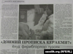 Тошкент шаҳри Яшнобод тумани ИИБ Миграция ва фуқароликни расмийлаштириш бўлими ватандошларни пул эвазига ноқонуний равишда доимий пропискага қўйиш ҳолатлари аниқланди (“Постда”, 23 сентябрь). Бўлимда ёрдамчи сифатида ишлаган аёл вилоятлардан келган ўнлаб ватандошлардан доимий прописка учун 3000 АҚШ долларигача пул олган. Сўнг паспорт бўлимининг қатъий ҳисобида турган муҳр ва штамплардан фойдаланиб, ватандошларнинг паспортига яширин равишда муҳр ва штамп босиб, доимий пропискада тургани ҳақида сохта маълумотлар киритган. Ушбу ноқонуний фаолиятга исми ошкор этилмаган бўлим ёрдамчиси раҳбарлик қилгани ва унга бошқа танишлари ёрдам бергани хабар қилинган. Жиноят аниқлангач, ушбу гуруҳ аъзолари ва уларга пул берган шахслар жиноий жавобгарликка тортилган. Хизмат вазифасига совуққонлик билан қараган Яшнобод туман паспорт бўлими ходимлари ҳам жазодан бенасиб қолмаган. Доимий пропискага оид жиноят ишидан етказилган зарар 188,8 миллион сўм деб баҳоланган.