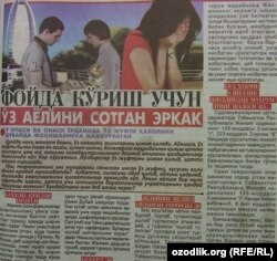 Тошкент вилояти Бекобод туманида яшовчи 40 ёшли аёл бир ойлик чақалоғини 1000 АҚШ долларига сотаётганда қўл олинди (“Ҳуқуқ”, 30 ноябрь). Зангиота тумани прокурори Зоҳид Қораевга кўра, аёл тумандаги кафелардан бирида савдони пишитаётганда ушланган.