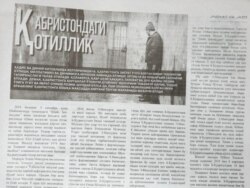 Тошкент шаҳридаги қабристонда рўй берган қотиллик тафсилотлари маълум бўлди (“Ҳуқуқ”, 12 декабрь). 2018 йил 5 сентябрь куни “Шайх Зайниддин” қабристонидан бўйни кесилган жасад топилган эди. Тошкент шаҳри прокуратураси алоҳида муҳим ишлар бўйича терговчиси Жасурбек Маҳмудовга кўра, тергов-суриштирув жараёнида қотиллик “Akfa medline” клиникаси ходими томонидан содир этилгани аниқланди.