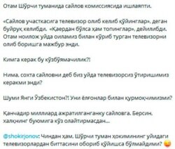 “Лекин ўша ажратилган пулларни кимдир жиғилдонидан ўтказиб, сайлов комиссиясидагиларни мажбурлаётган бўлиши ҳам мумкин-ку?! Бу биргина Шўрчида бўлаётган ҳолат эмас. Бутун республикада кўзбўямачилик авжига чиққан”, дея раддияга муносабат билдирган журналист Ш.Шокиржонов.