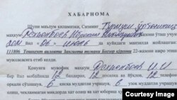 Ozodlikka taqdim qilingan rasmiy hujjatga ko‘ra, Ibrohim Dehqonboyev Toshkent viloyati Zangiota tumanidagi 22-jazoni ijro etish muasasasiga joriy yilning 6 - iyul kuni keltirilgani qayd etilgan.