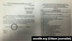"Sizdan Telegram" лойиҳасида Сиздан келаётган хабарлар, фото ва видеолар ўрин олади. Telegram, WhatsApp тармоғидаги рақамларимиз: +420 724 971 539; +420 724 740 755. Электрон почтамиз: ozodlikmail@gmail.com 60 йилдан зиёд вақт мобайнида холис журналистика андазалари асосида фаолият юритаётган Озодлик радиоси, агар истасангиз, шахсингиз сир қолишини кафолатлайди. ******************************************************************************