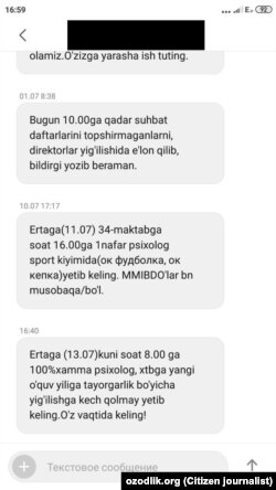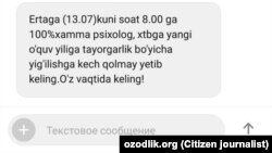 ИЗБОСКАН. “Андижон вилояти Избоскан туманидан ёзмоқдамиз. Халқ таълими бўлими раҳбари мажлисбозликни авжига чиқармоқда. ХТБ мудири таътилдаги раҳбар-ходимларни ҳам деярли ҳар куни мажлисга чақиради. 42-45 даража иссиқда мажлис! “Президент мажлисбозлик қилманглар” деб айтди-ку деcак, “ит ҳурар, карвон ўтар” деб жавоб беришди. Булар ҳатто президентнинг гапини ҳам олмайди! Айтишларича, туман ХТБ мудирини шахсан вилоят ҳокими қўлламоқда экан. Шу сабаб ҳеч кимдан қўрқмас экан”.