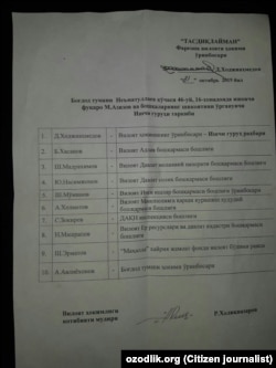 ФАРҒОНА. “Биз – М.Азизов ва Б.Остонақулов, Фарғона вилоятидан ёзмоқдамиз. Аввалроқ ХМКК-92 давлат корхонаси мулки талон-торож этилгани ҳақида мурожаатларимиз эълон қилинган эди. Бу борада вилоят ҳокими Шуҳрат Ғаниев шахсан учрашиб, мазкур масала қонуний ҳал этилишига ваъда берди. Ҳолатни ўрганиш учун ишчи гуруҳ тузилди ва унга вилоят ҳокими ўринбосари раис этиб тайинланди. Биз муаммога масъуллар эътибор қаратмагани учун норозилик намойиши ўтказмоқчи эдик. Эндиликда намойишни тўхтатиб турамиз. Аммо муаммо қонуний ҳал этилмаса, яна норозилик намойиши ўтказишга мажбур бўламиз”.