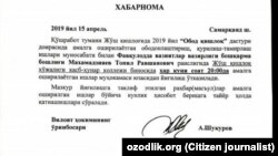 (Бу хабар Озодликка 20 апрель куни келган.)​