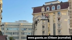 24 май куни Тошкентнинг Мирзо Улуғбек тумани, "Новомосковская" турар-жой мажмуасидаги кўп қаватли уйнинг саккизинчи қаватидаги хонадон балконига илинган Украина байроғи махсус кран воситасида олиб ташланди.