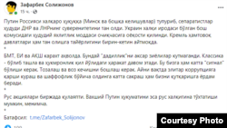 Журналист ва блогер Зафар Солижонов ҳам Россия агрессияси Ўзбекистонга ҳам жиддий «сигнал» эканлиги ҳақида ёзди: